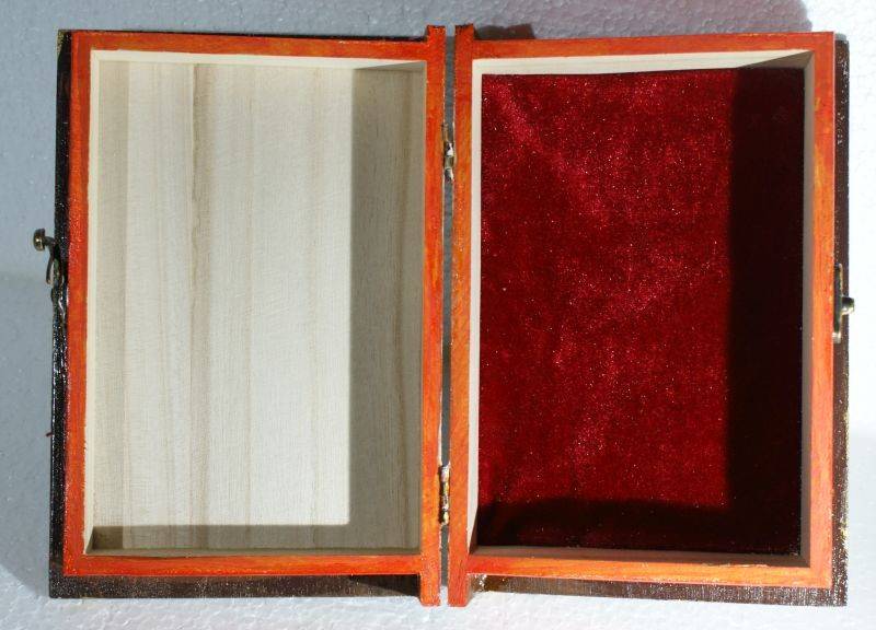 Casetă tip carte din lemn de pin cu închizătoare și balamale metalice, căptușită în interior cu catifea. Se poate utiliza pentru depozitarea bijuteriilor, a fotografiilor dragi, a amintirilor de suflet, a micilor obiecte de birou sau pentru obiectele populare tradiționale de mici dimensiuni. Coperta casetei este pictată manual în culori tempera cu tematica Mărărițe, Ochiul-Boului. Obiectul este protejat cu baiț și lacuri speciale, pentru a se păstra caracteristicile picturii, în timp, și pentru a rezista razelor UV. Caseta poate reprezenta un cadou deosebit pentru doamne și domnișoare, la diverse ocazii, dar și un reușit dar de nuntă (se pot pune verighetele și fotografiile) ori de casă nouă. La cerere, obiectele se pot personaliza sau executa în culorile și cu tema aleasă de client. Pentru detalii suplimentare nu ezitați să ne contactați!