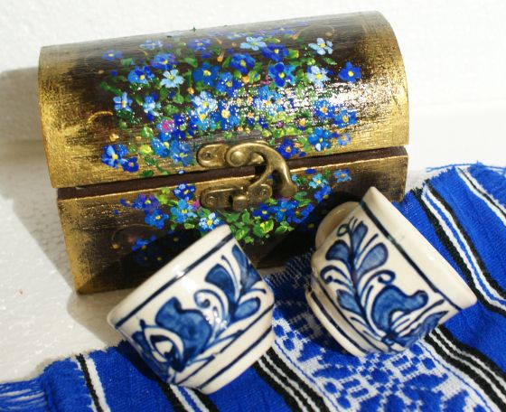Casetă suvenir pictată cu flori de Nu-mă-uita