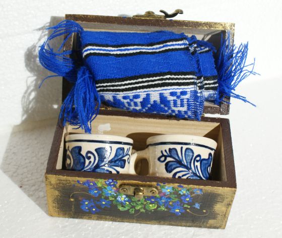 Iată ce poate conține! Sugestie de prezentare cu obiecte tradiționale din Transilvania sau ouă încondeiate din Bucovina.