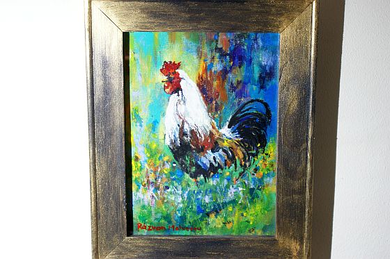 Pictură originală „Cocoș în gospodărie” , unicat