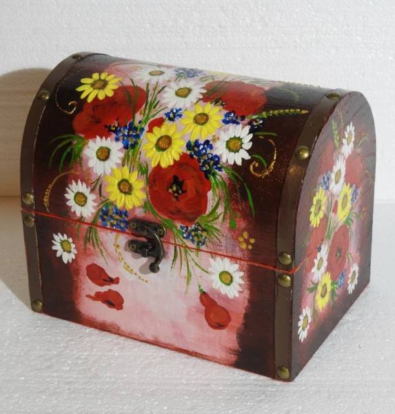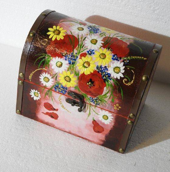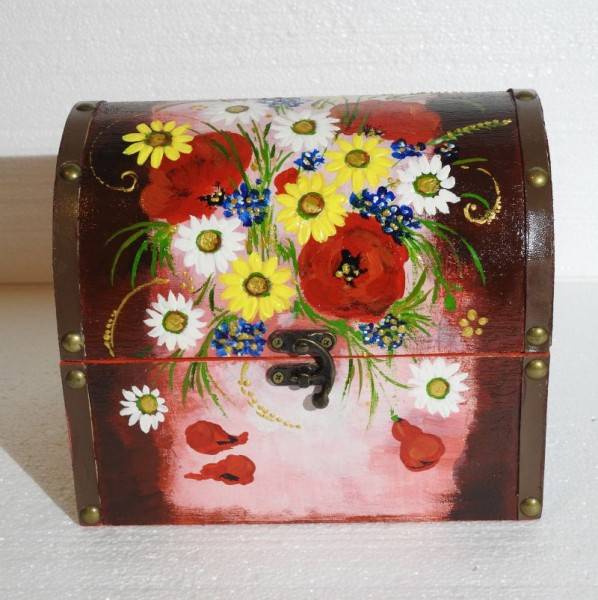 Cufaras din lemn pictat manual cu flori de camp (I)