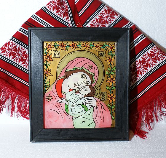 Icoană pe sticlă Maica Domnului