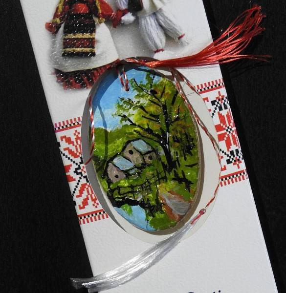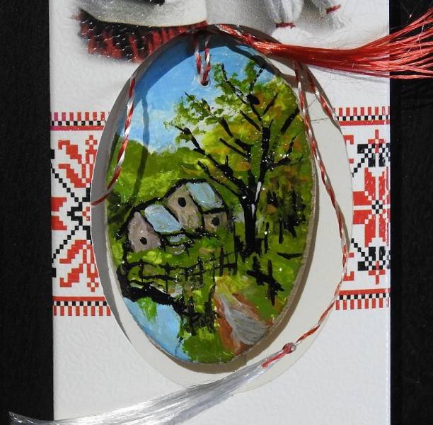 Mărțișor pictat manual - Peisaj rural
