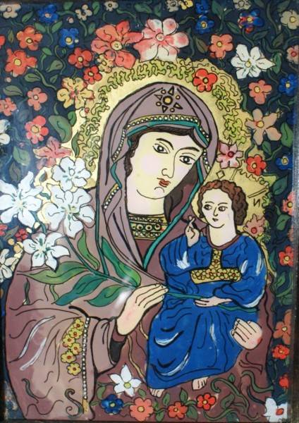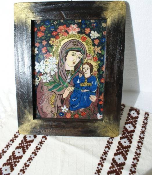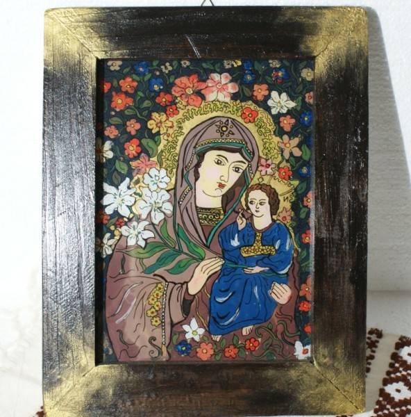 Icoana Floarea cea Nevestejită sau Neprihănită este o piesă de artă religioasă deosebită, realizată manual pe sticlă folosind culori tempera, foiță de aur și gălbenuș de ou. Rama sa din lemn masiv, baituit, antichizat cu aur ducat, adaugă un plus de valoare și frumusețe acestei icoane.