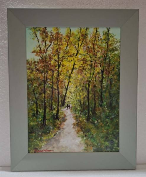 Acest tablou semnat de Răzvan Gabriel Mateescu surprinde o scenă poetică de toamnă, în care natura devine cadrul ideal al unei plimbări liniștite prin pădure. Compoziția este construită în jurul unei alei luminoase, care șerpuiește ușor printre copacii înalți, conducând privirea către un punct de profunzime ce sugerează mister și continuitate.