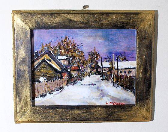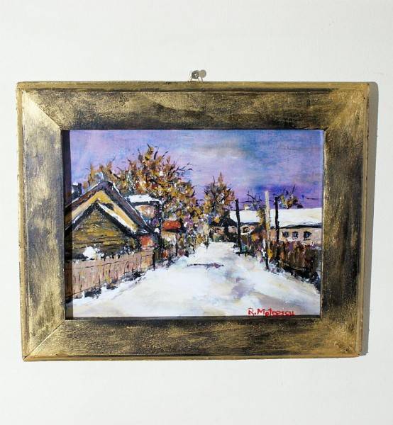Pictura originala peisaj de iarna, strada copilariei, unicat